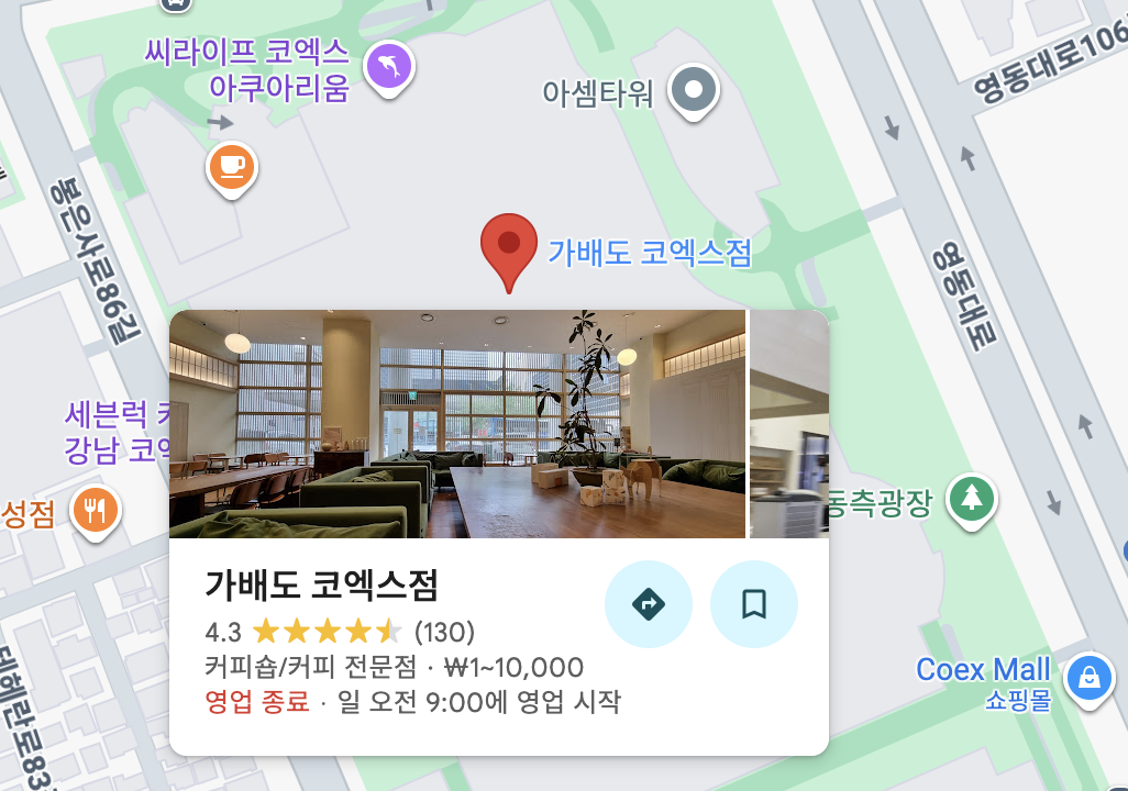 나는 원래 가배도를 알고 찾아간 게 아니었다. 코엑스에서 일이 끝나고 그냥 눈에 보이는 카페에 들어간 것뿐이었다.